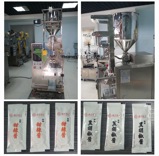 上海糧全其美作為手抓餅的品牌領導者,其秘制醬料也是消費者的必搭配食品;近日為了迎合市場需求推出了新款醬料,在我們星火包裝機械購進了多臺小型醬料包裝機用來包裝小袋裝的甜辣醬、黑胡椒醬等