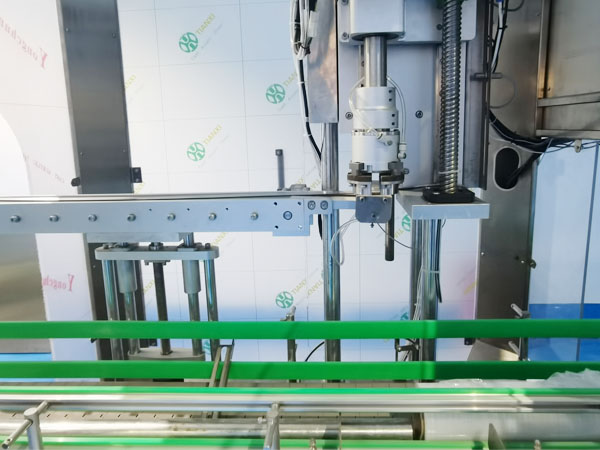 大型旋蓋機(jī)械是一款高度自動(dòng)化的機(jī)械設(shè)備,它可以根據(jù)自身的機(jī)械性能與灌裝機(jī)、輸送機(jī)、貼標(biāo)機(jī)等形成聯(lián)動(dòng)生產(chǎn)線,塑料桶自動(dòng)旋蓋機(jī)的工作方式非常的智能,它通過(guò)傳送帶系統(tǒng)帶有商品的塑料桶抵達(dá)旋蓋工位后,以定位器將塑料桶固定在旋蓋位置,此時(shí),塑料桶自動(dòng)旋蓋機(jī)的旋蓋頭開(kāi)始下降并抓緊蓋子,然后按照工作人員設(shè)定的扭矩值旋轉(zhuǎn)至指定的緊固程度,在整個(gè)生產(chǎn)過(guò)程當(dāng)中,大型旋蓋機(jī)械會(huì)根據(jù)實(shí)際情況自動(dòng)調(diào)整生產(chǎn)速度和力度以確保極佳的生產(chǎn)效果。
